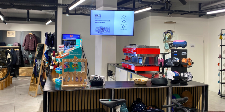 Mit einer Digital-Signage-Buchung bei der Bike Academy Davos in Davos Platz werden bis zu 3000 Kontakte innert der Laufzeit von 4 Wochen erreicht. Dabei kann der Zeitpunkt der Ausstrahlung der Werbebotschaft selbst bestimmt werden.