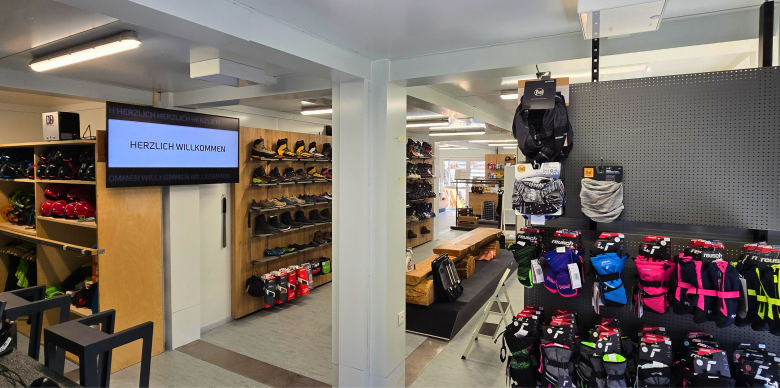 Mit einer Digital-Signage-Buchung bei Jon Sport in Scuol werden viele Kontakte innert der Laufzeit von 4 Wochen erreicht. Dabei kann der Zeitpunkt der Ausstrahlung der Werbebotschaft selbst bestimmt werden.